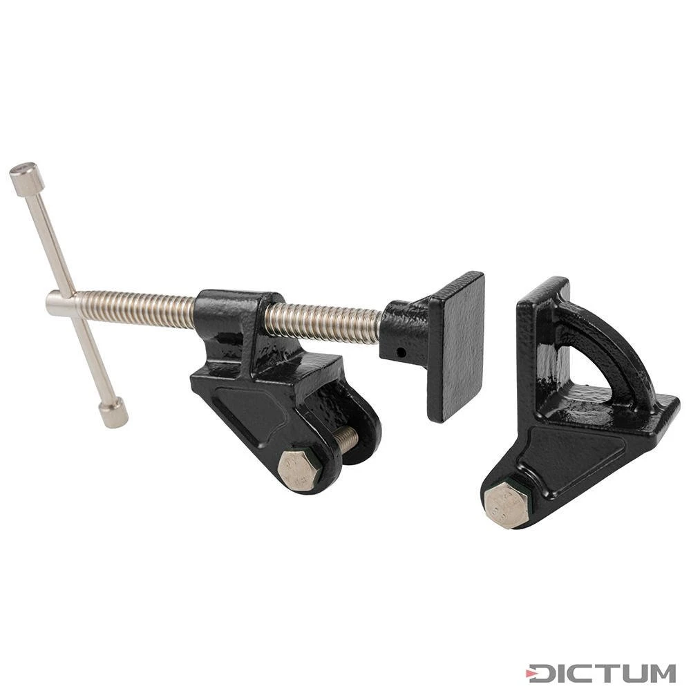 Éléments de serrage robustes en fonte grise solide pour le montage sur du bois équarri ou un tube carré de 25 mm de largeur. Large surface de pression, surfacée, pour une répartition régulière de la pression et pour éviter des empreintes de serrage. Jeu : Jeu : élément de tête et de pied, incl. les vis (sans poutre).