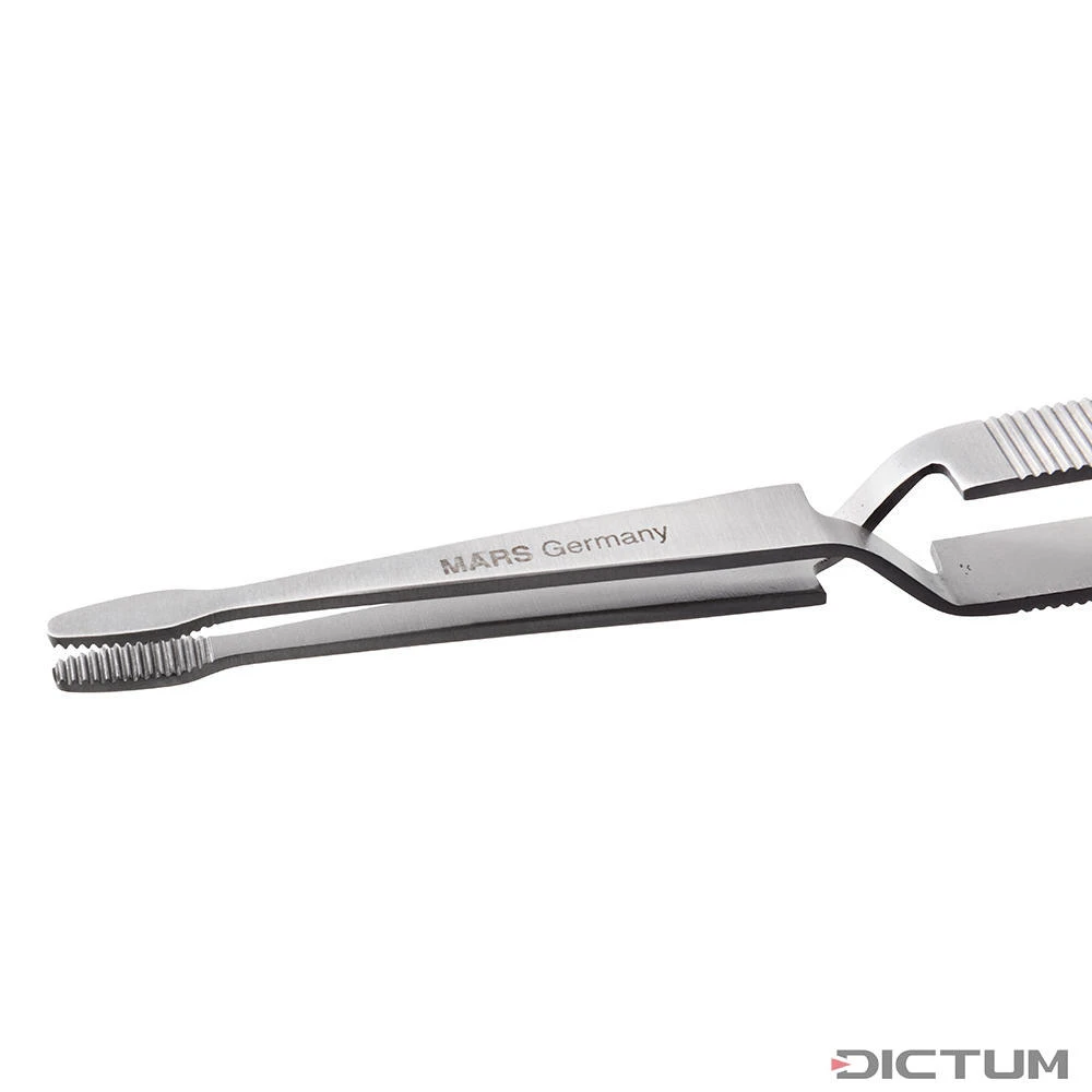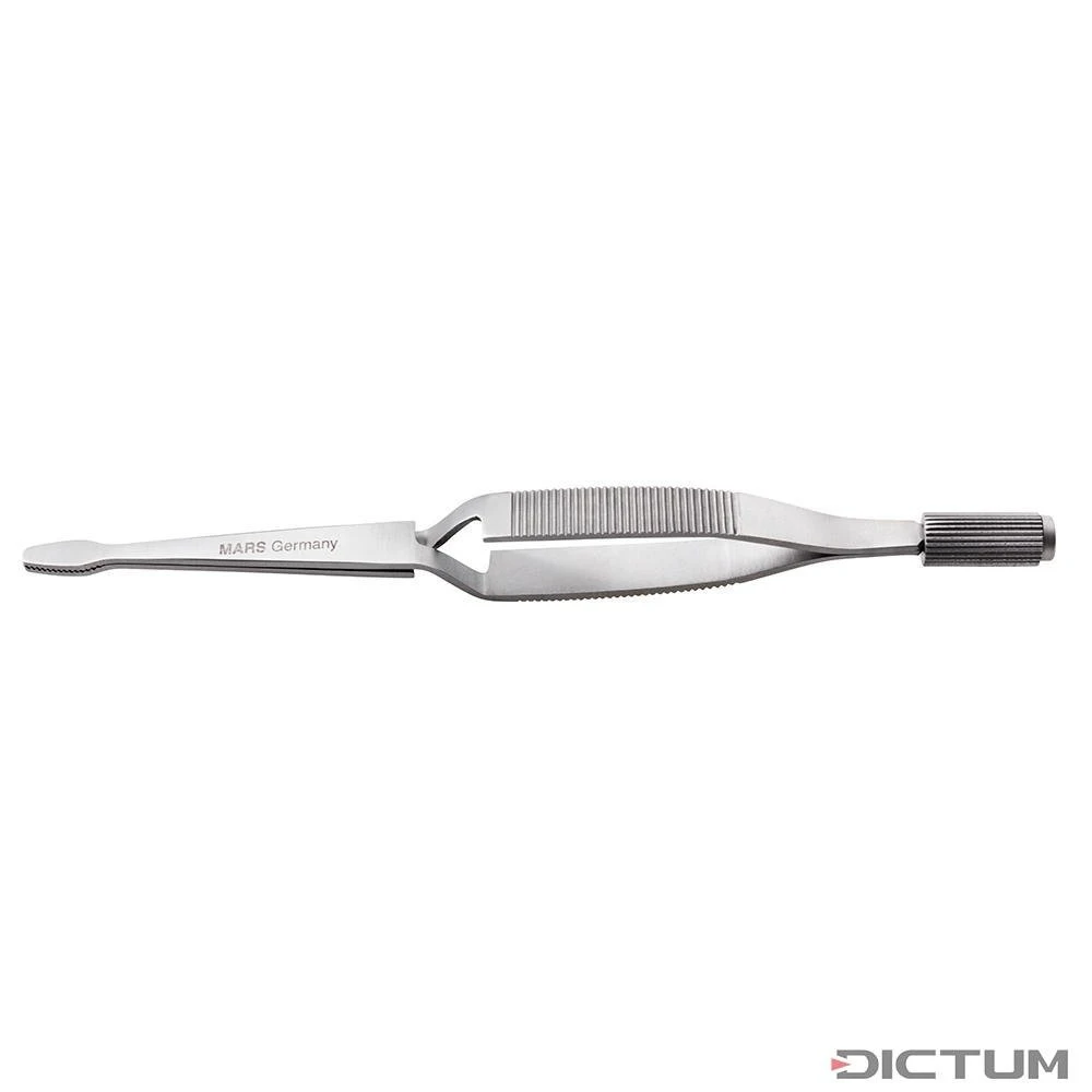 Pince à tiques en acier inoxydable. Le pré-serrage de la pince maintient en toute sécurité la tique qui peut facilement être retirée à l’aide de la poignée rotative. Stérilisable.