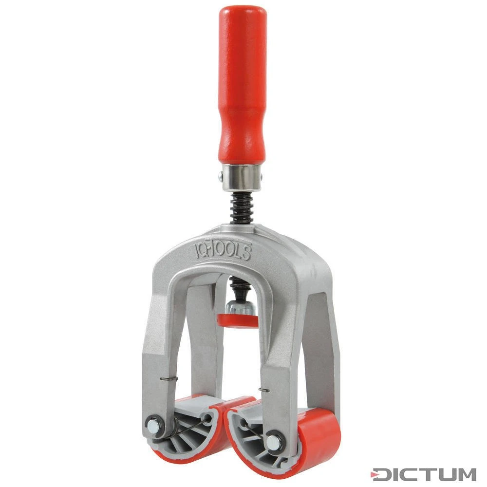 Presse à chant pratique pour l’application de chants et de bordures sur les grands éléments et sur les rayons intérieurs et extérieurs. Même les lamellés-collés selon des gabarits peuvent être réalisés facilement sans aide extérieure. Les mors de serrage antidérapants adhèrent même sur les surfaces lisses (plaque de résine de mélamine) sans endommager la surface du plateau. L’utilisation à une seule main permet de traiter des éléments de surfaces importantes sans aide extérieure.