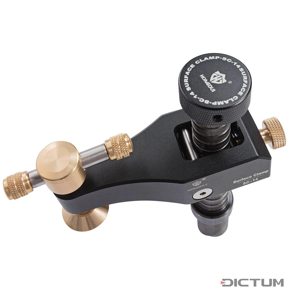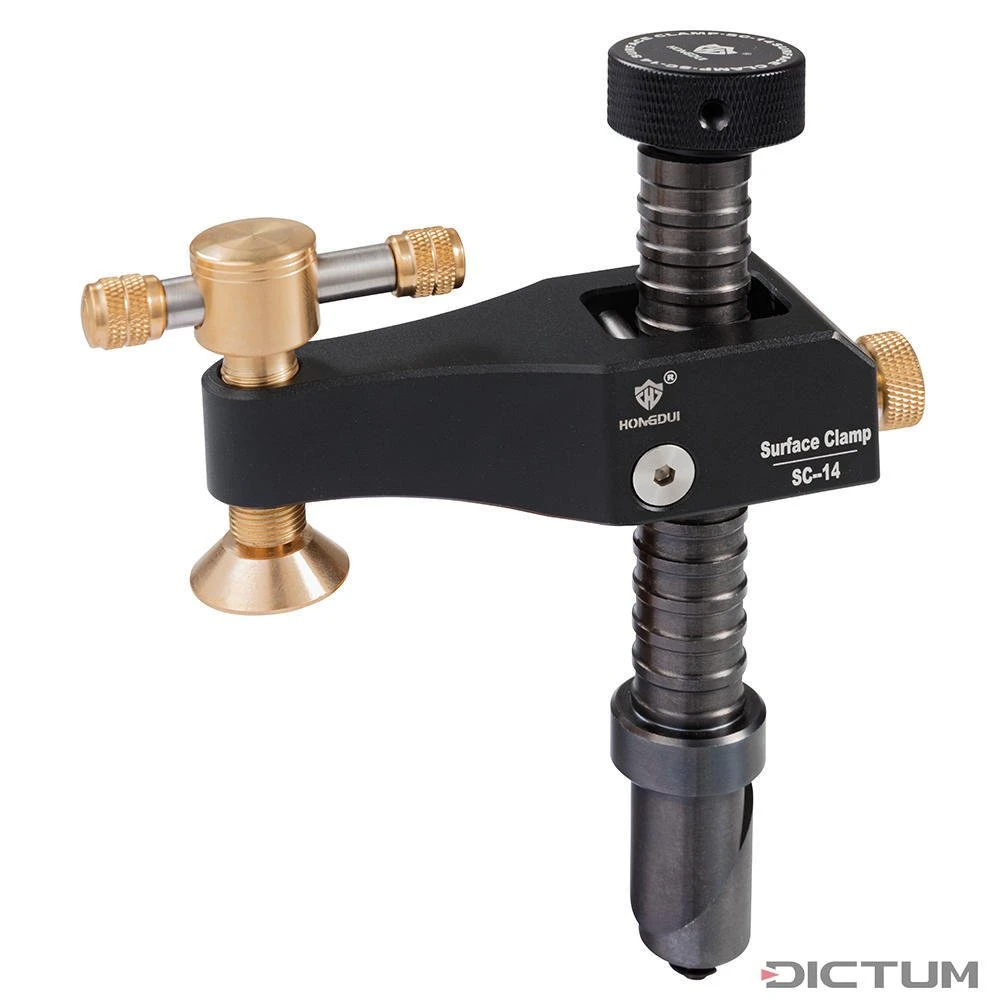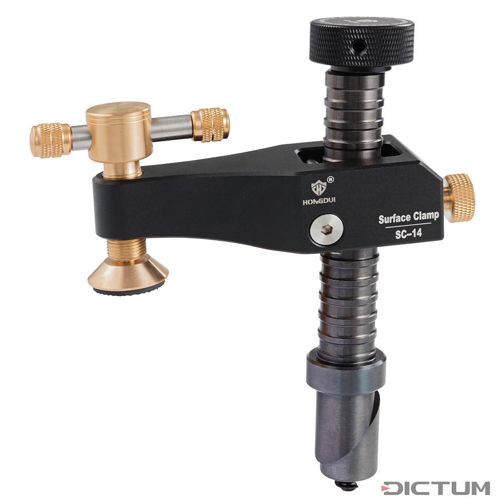 ÉquipĂ© d’un boulon de serrage, le système de serrage peut ĂŞtre ancrĂ© dans des trous de 19-20 mm. IdĂ©al pour les travaux sur les tables multifonctions ou les Ă©tablis. Le boulon fendu Ă l’extrĂ©mitĂ© infĂ©rieure de la tige est insĂ©rĂ© dans le trou et serrĂ© par le haut Ă l’aide d’une vis moletĂ©e, ce qui le coince dans le trou en toute sĂ©curitĂ©. Le bras d’extension s’enclenche de manière automatique sur la tige rainurĂ©e, idĂ©al pour un rĂ©glage rapide de la hauteur de serrage. Une vis moletĂ©e Ă l’arrière permet de fixer le bras d’extension dans sa position, ce qui est idĂ©al pour les fabrications en sĂ©rie. La poignĂ©e sur la vis de pression en laiton assure une grande force de serrage avec peu d’effort.